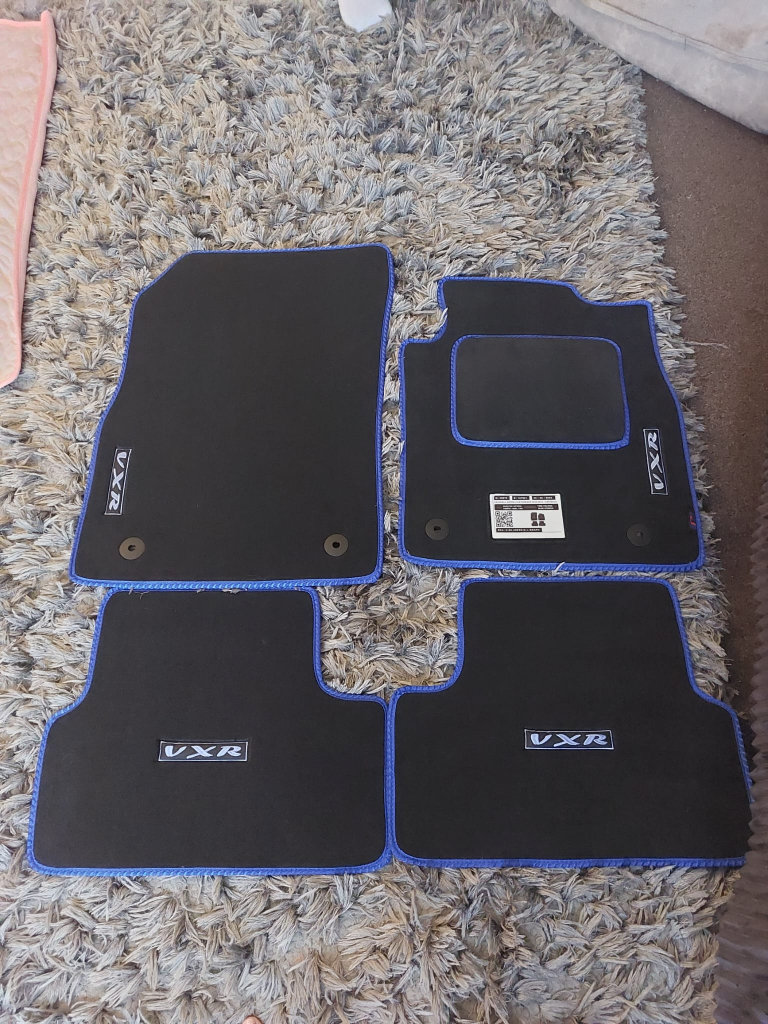 Here I'm selling my tailor made car mats for a vauxhall Astra VXR,2010 onwards,,hand stitched in grey,blue trim and light blue hand stitched VXR in the front and rear, selling because I pressed ASTRA instead of CORSA,b mistake and they won't expect them back, was only delivered to me end of last week (they were meant to be a surprise birthday present) so selling so I can order cosa one's.