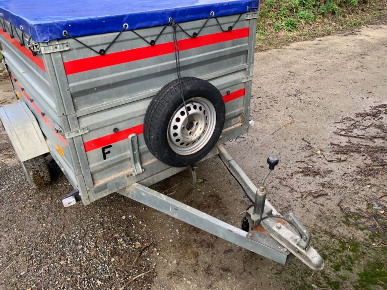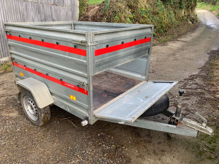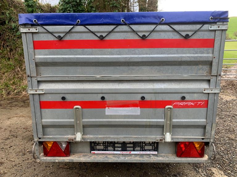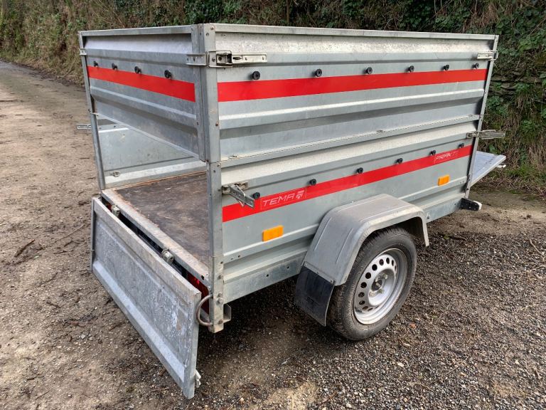 Tema trailer for sale - high sides, in good condition, good tyres, good spare wheel, jockey wheel, number plate holder, key to lock the hitch, lights all work and comes with a cover.