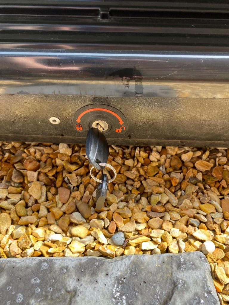 Over 400 litre capacity. Up to 75kg of weight. In full working order with two keys.