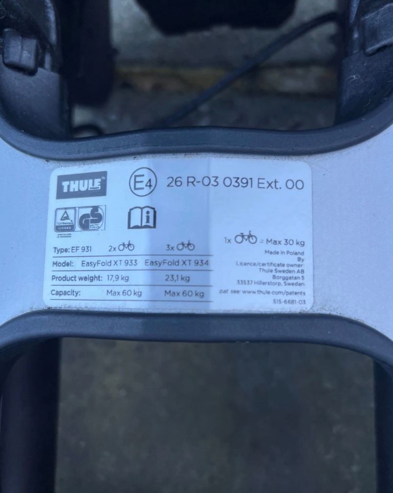 Posting for 12+ yearsThule easyfold XT 934 3 bike carrier towbar e-bikes
