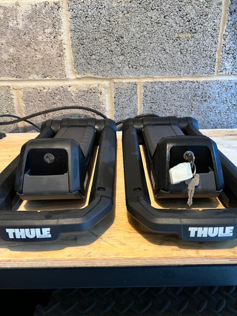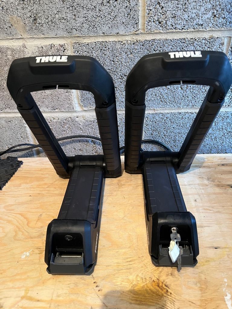 A lightly used Thule 849000 Hull-a-Port Aero pair of single kayak carriers in good condition.