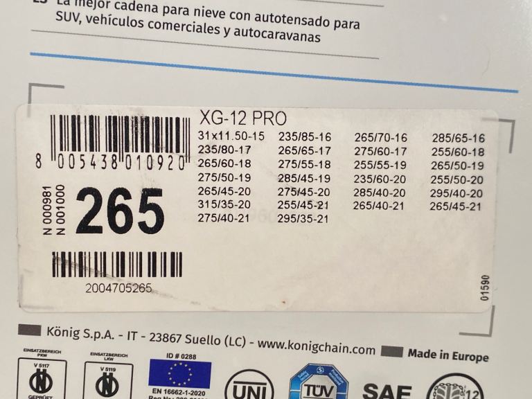 Posting for 14+ yearsThule Konig XG-12 Pro 265 Snow Chains – Brand New & Sealed