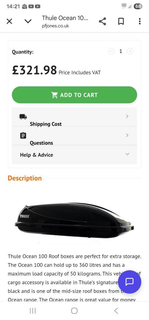 THULE Ocean 100 Roof Box in Excellent condition and full working order.