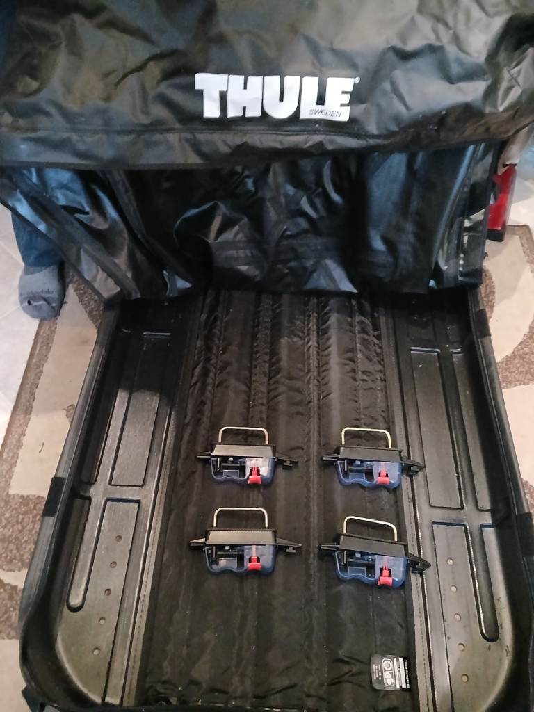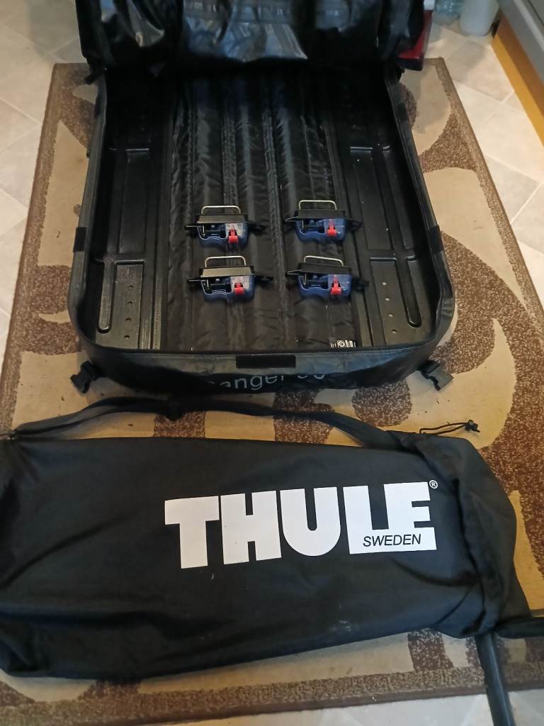 Ranger 90 Thule roof bag for sale, folds up for storage, can take 50kg of weight, can take 280 litres of storage capacity,carry handle, fits on roof bars quick release mounts included as photos show, very good condition £55
