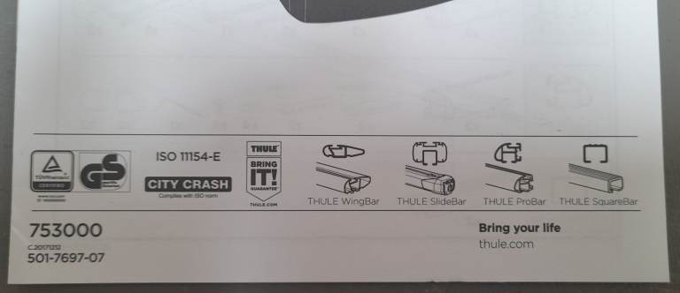 Roof bars not included but fits various Thule bars as per Image 3.