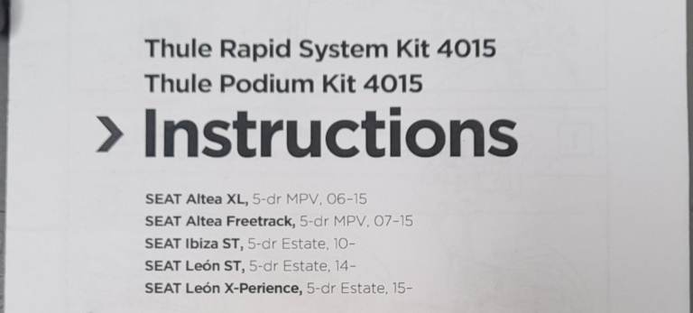 Thule Rapid system 753 and 4015 fitting kit for various Seat models as per Image 2.