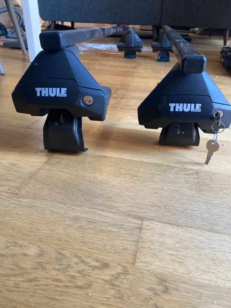 Thule roof bars and feet. Keys included. Not sure if it had a screw driver with it but I don’t have it. See pics for the car I had at the time of buying them. Ford focus