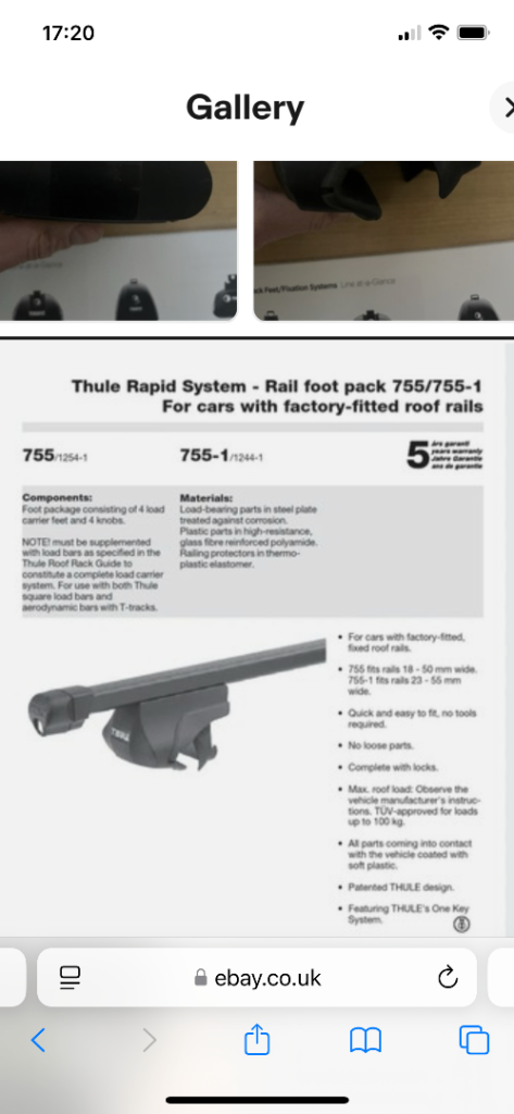 Posting for 14+ yearsThule roof bars ( 2 ) and foot pack (4)