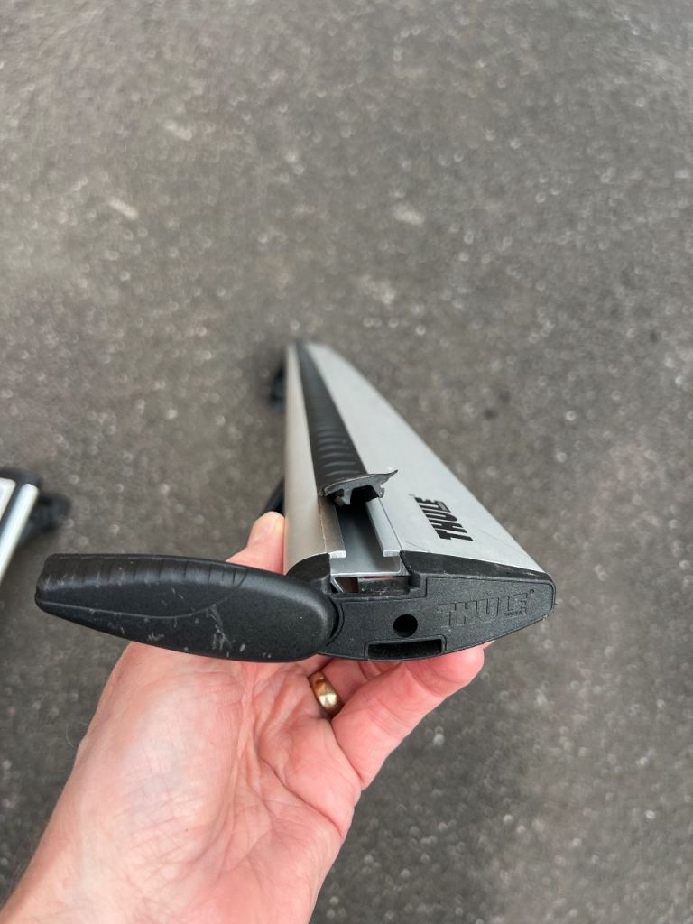 1225mm Thule roof bars. C/w brackets. Code on them 8523793001. I believe they are WingBar Evo but cannot be 100%. No Allen key.