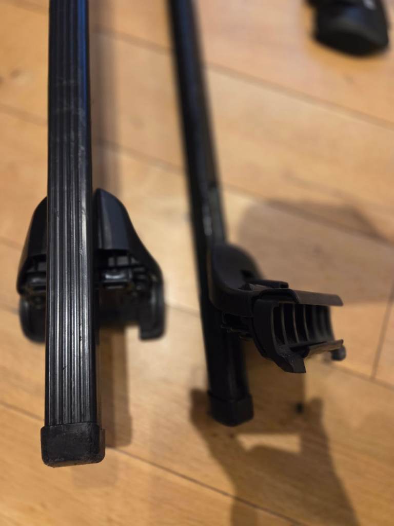 Thule square bars with rapid fit 753 feet. Used on flush rails, eg Volvo V60, XC60 (Will fit other makes and models of car. Please check if these will work for your car) Bar length 1.2m. Secured using keys (x2). These are in used but decent condition.