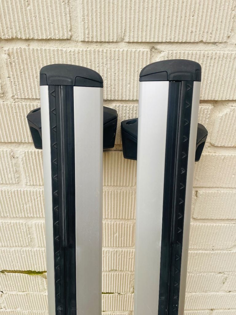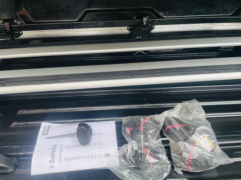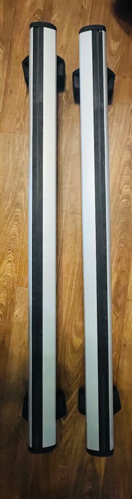 Thule roof bar system to fit car roof rails that are flushed to car roof. Includes two spare keys