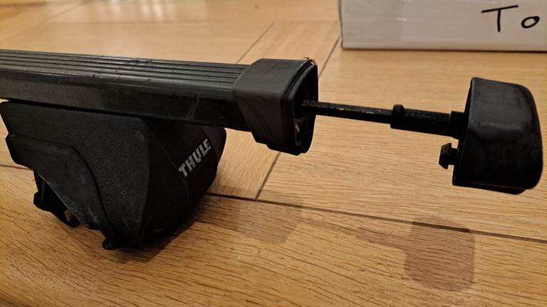 Pair of THULE Roof Rack/Bars for cars with OPEN roof rails. The bars were bought and used on a Mondeo Mk4 estate but as I've now sold that they no longer fits my new car. They're about 9 years old but have been well looked after/maintained. They're removed from the car when not in use and hence they're in great condition. The bars will fit roof rails with an outside measurement of about 980mm to 1100mm. I've included a picture of a red car with OPEN roof rails to show how these differ from the alternative CLOSED roof rails, note I'm not selling the roof rails in the picture...:-). Thule is by far the best make on the market and hence a new pair of these roof bars cost £250. I know as I've just had to buy some...:-(.