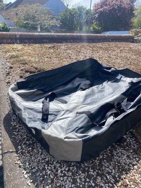 110cm x 80cm x 40 cm. Easy to fit and store. Water resistant. Little use and dry stored.