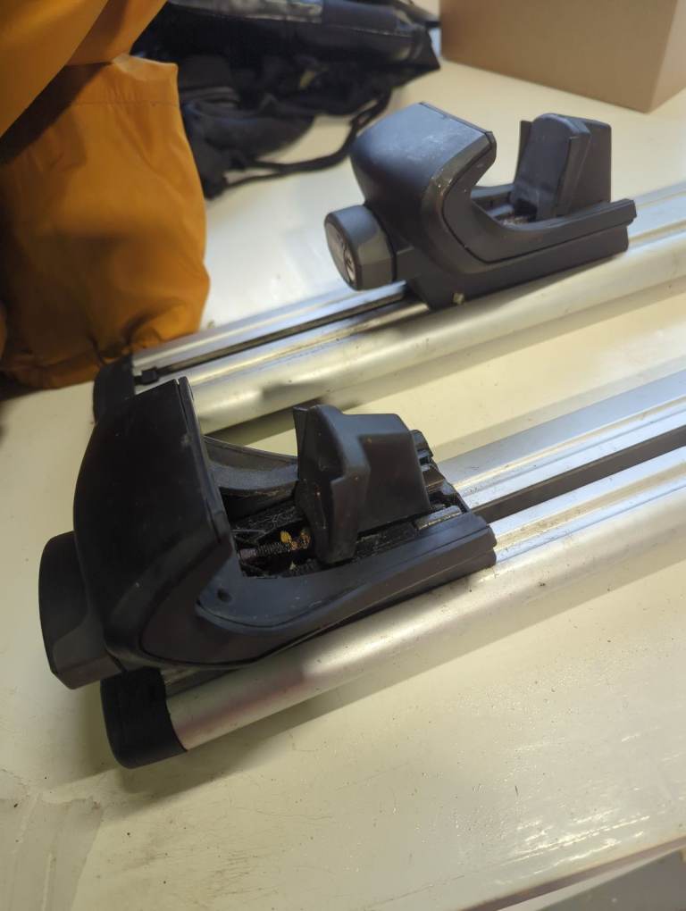 Thule wingbar roof bars max width 110cm minimum 81cm these are used condition they do have some marks they were expensive new comes with a pair of keys