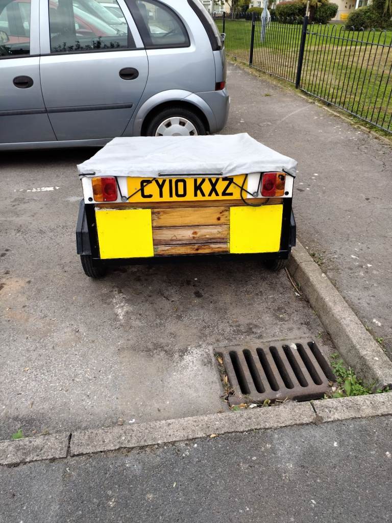 Solid little trailer with lightboard. Waterproof cover with new elastic rope. Easy to tow.
