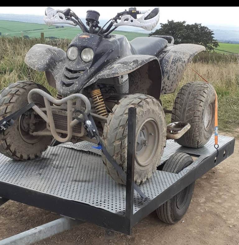Flat trailer this was built from an ex trailer tent to will carry up to 500kg really well I used it to transport my quad as pictured plz note quad is not for sale it may require new lights but does have 2 near brand new tyres