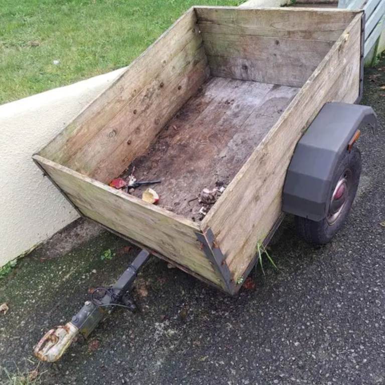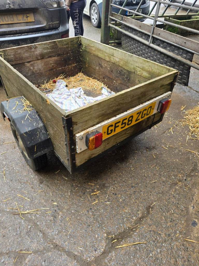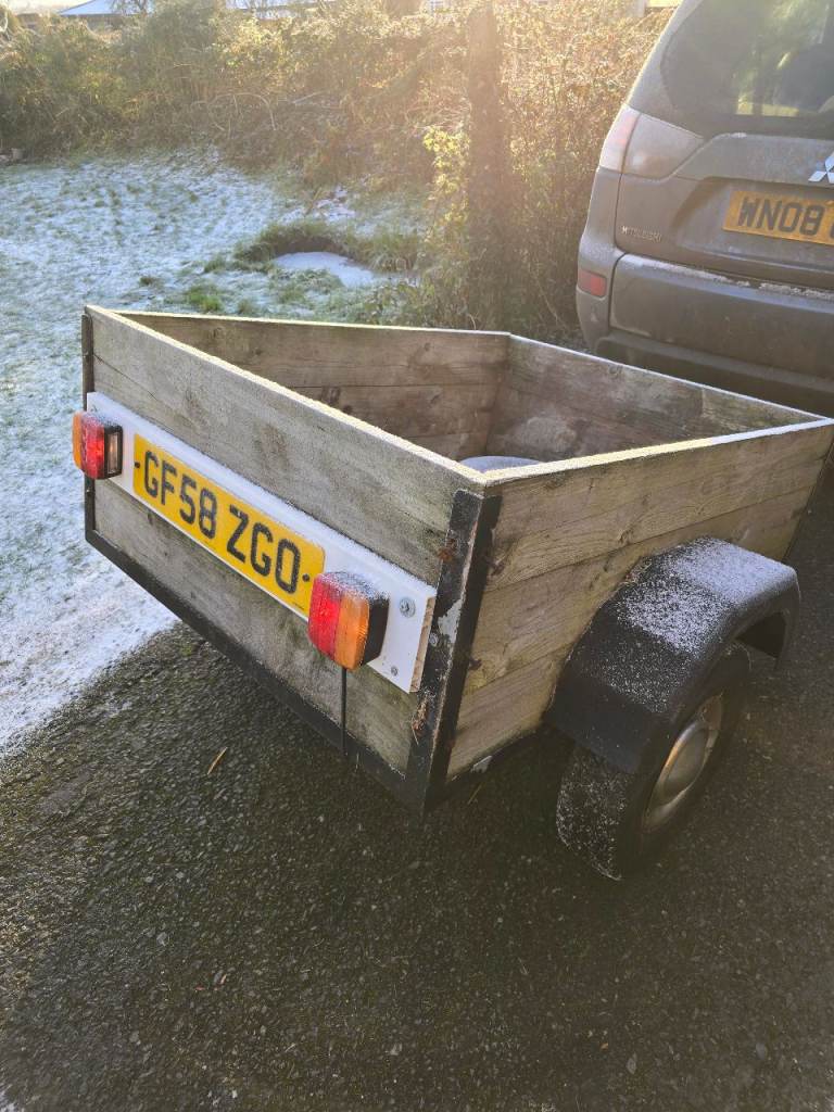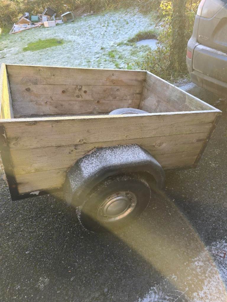 Looking to sell my 4'x3' trailer, tows very well, easy to hitch up etc, solid built, wood sides and base. Comes with working light board and spare wheel.