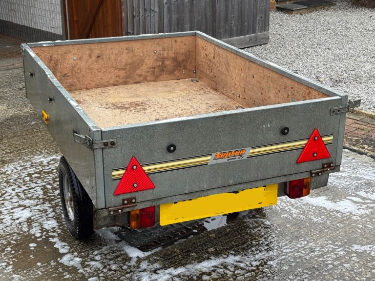 Neptune Gama City car trailer. All good working order and recently upgraded the inside to be lined with external ply with tie down points. Comes with a cover. Tyres are both good. Very useful size and rated to 400kg. Always been stored inside.