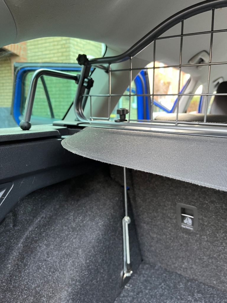 Travall dog guard to fit a Skoda Octavia Estate 2020 on. Fits with retractable rear parcel shelf in place, all fittings included. Cost new £184.99