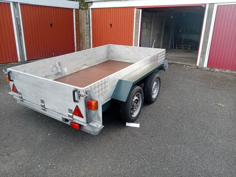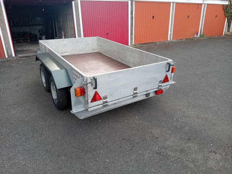 For sale twin axle trailer, 8ft x 4.5ft bed, brakes, front and back lights, brand new tyres, overall weight 1600kg, weight limit 580 kg, tyres 36psi,
