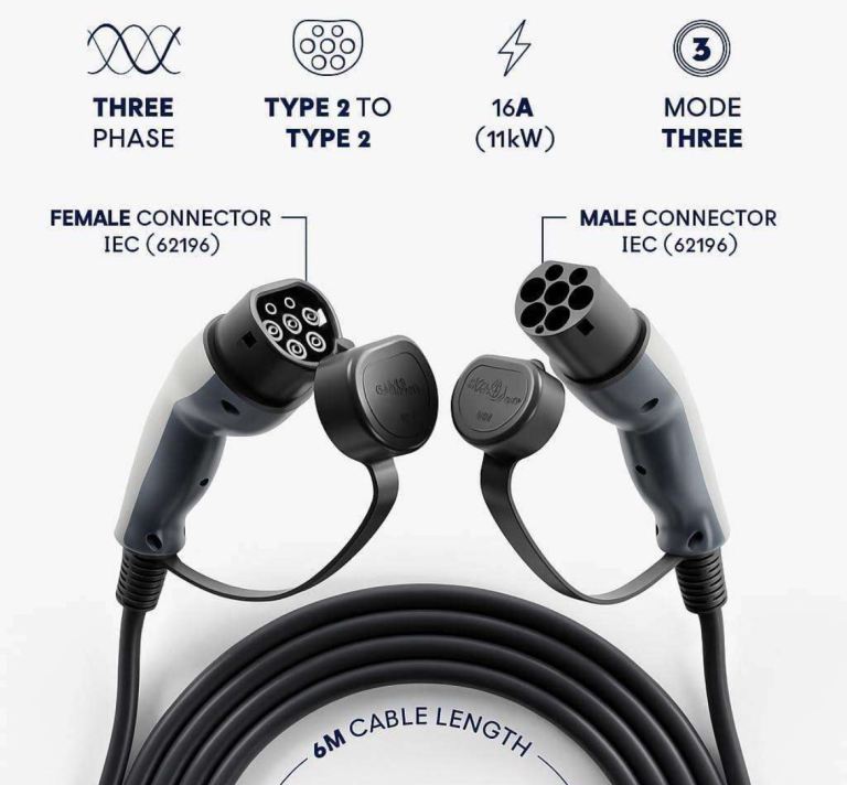 Type 2 EV Charging Cable – 11kW | 16A | 3-Phase | 6 Metre | Mode 3