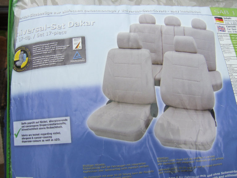 Posting for 5+ yearsUNIVERSAL 17 piece Set of PETEX, "DAKAR" BEIGE CAR SEAT COVERS with Leather Effect.