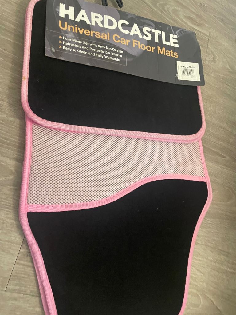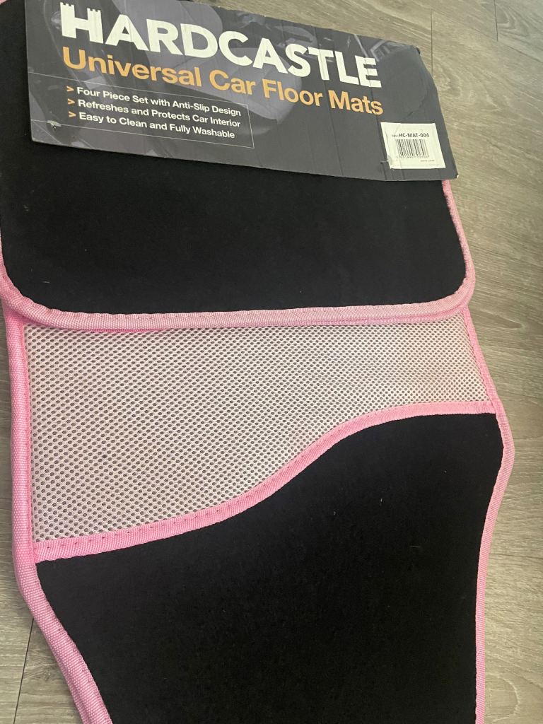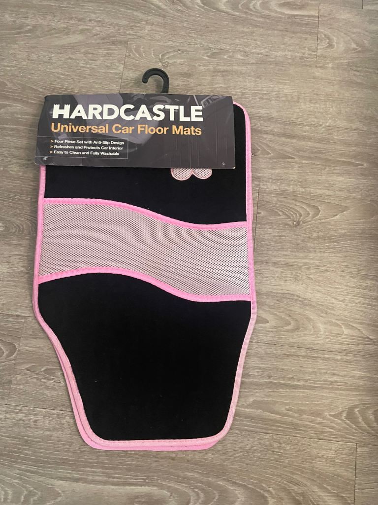 Hardcastle universal car floor mats new in beautiful pink black with pink love heart on u get four piece set anti slip design easy clean and fully washable these are pick up only