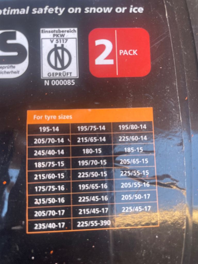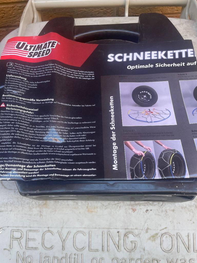 2 car snow chains in box with instructions never been on a vehicle