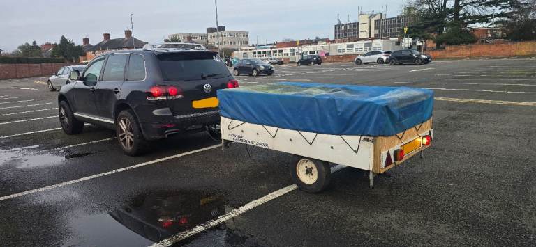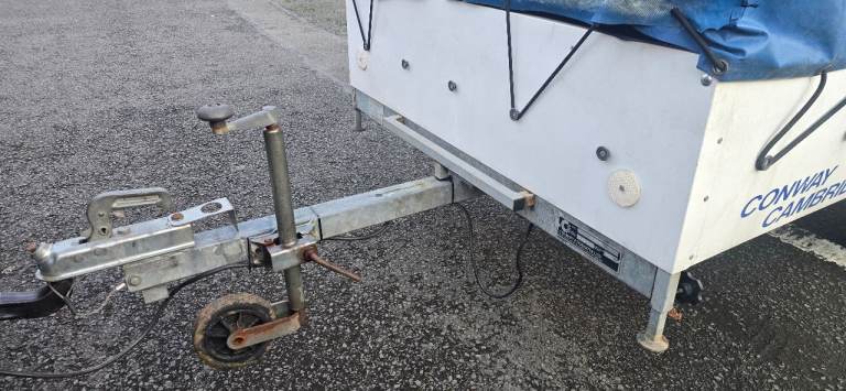 ex trailer tent converted into a utility trailer with drop tail and lights board. really clean and solid chassis with no rust. ideal for motorcycle or quad bike transport or camping. ready to tow away