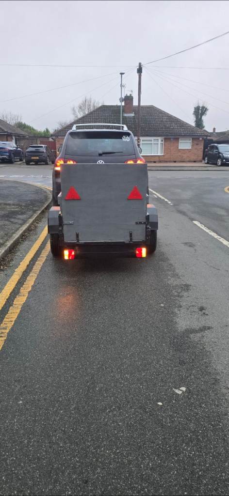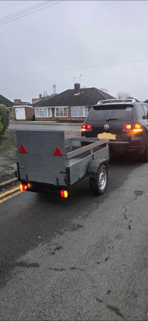 Heavy duty utility trailer with drop tail and lights. Ideal for motorcycle or quad bike transport up to 750kg. Ready to tow away