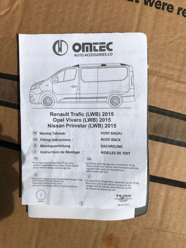 Omtec van roof bars (omtec1453), to suit Renault Trafic 2014/15 onward, Opel Vivaro 2014/15 onward, Nissan Primstar 2014/15 onward. May do other vans? Condition new and unused, come with paperwork and all fittings as supplied. Still have box and wrapping.