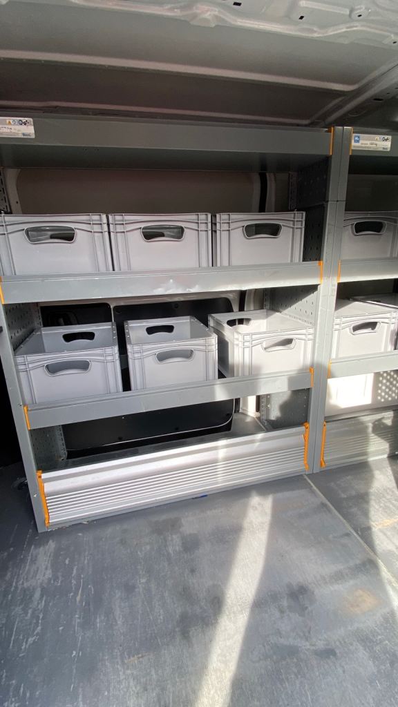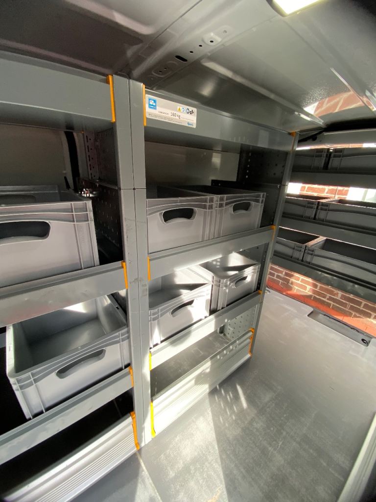 Vauxhall vivaro 2021 racking and plastic containers. Very good condition. Left in van for viewing cheadle Stockport collection only