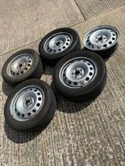 VW Caddy Van wheels. Set of 5 rims and 4 tyres (205/55 R16 94H) some light surface rust on rims. Selling as a set. Tyres are Bridgestone Turanza £210.00 + Vat. (Worthing)
