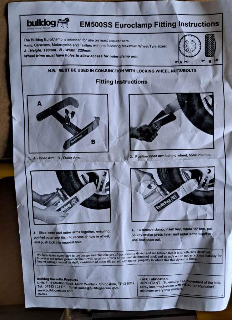Bulldog Euro Wheel Clamp EM500SS For Truck Tyres BNIB