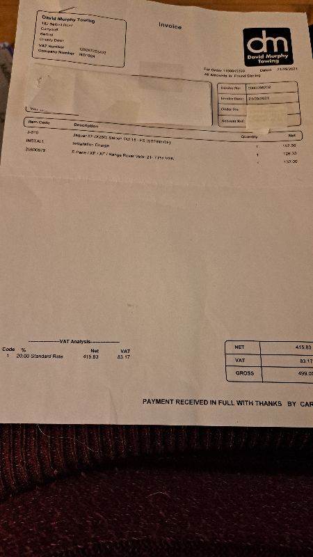 Complete towbar for XF Jaguar car. All parts present. See photos for original receipt.