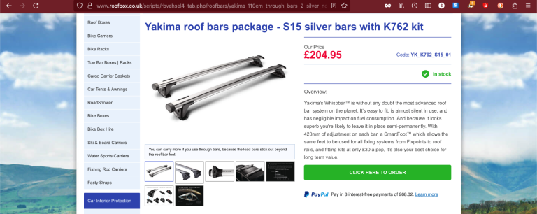 Yakima roof bars in very good condition. Bought on the roofbox company website to fit on our Toyota Yaris. You can check wether it will fit on your car on their website.