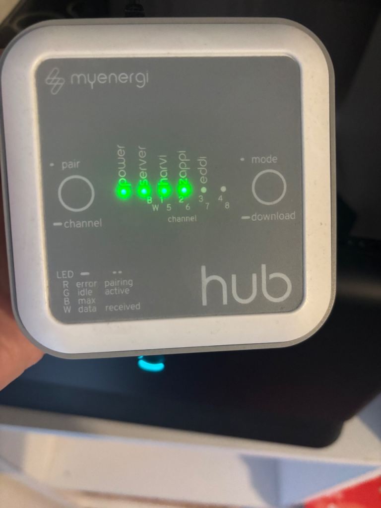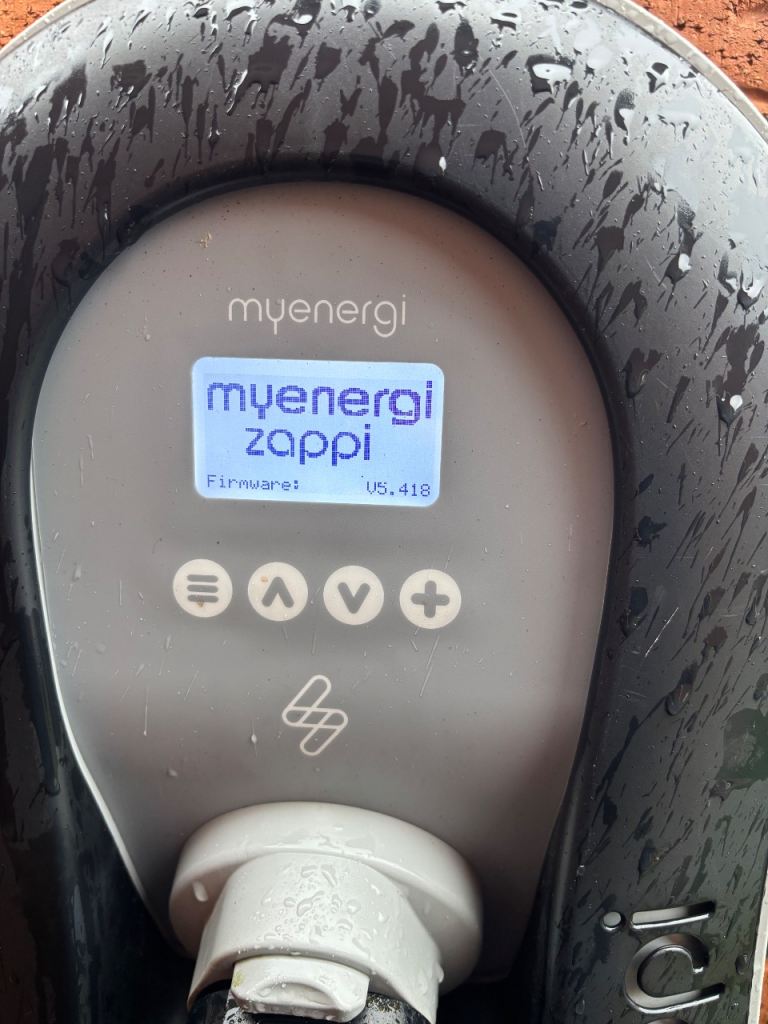 Myenergi Zappi V2 charger with hub and harvi for energy monitoring.