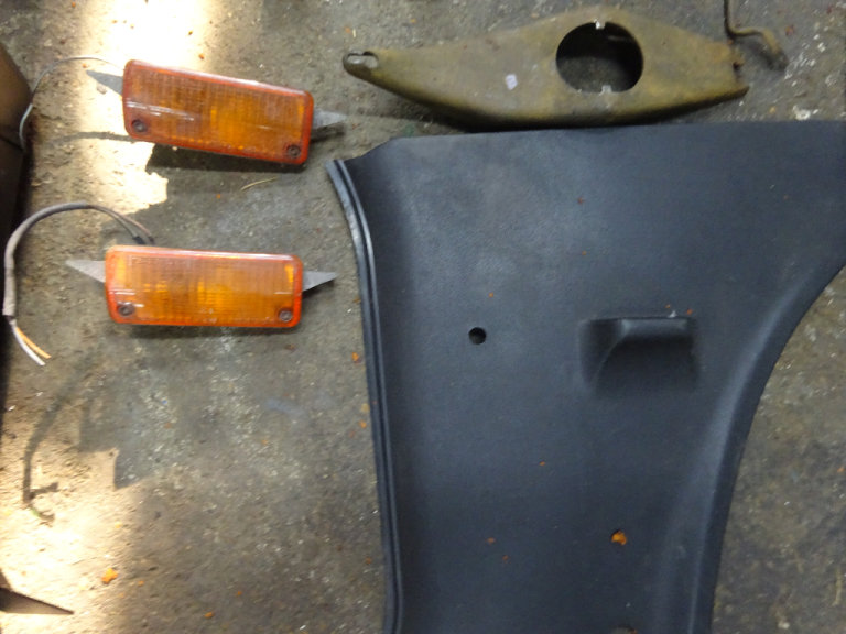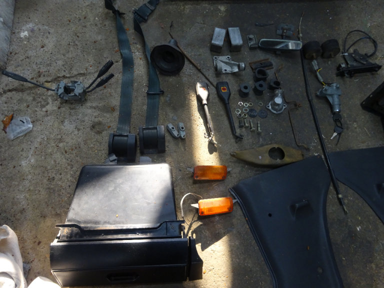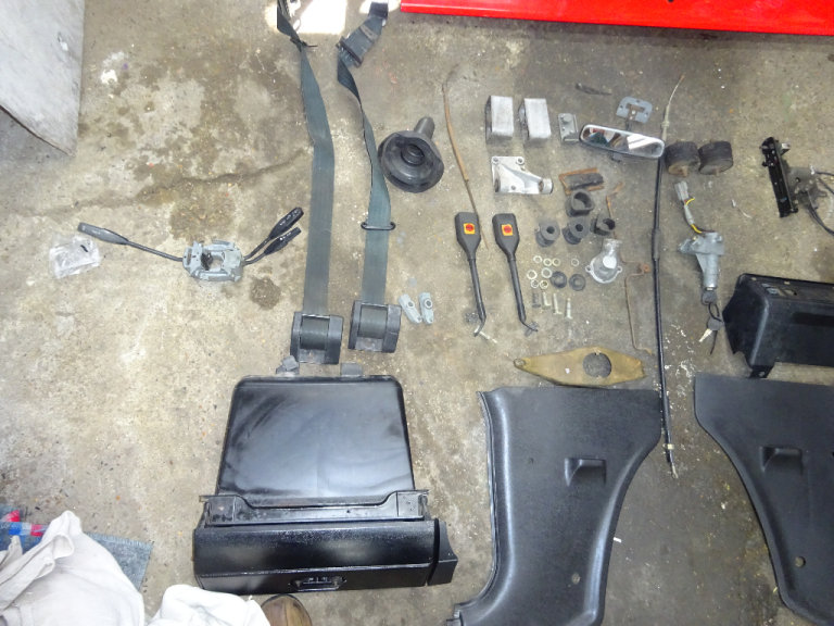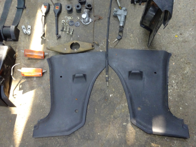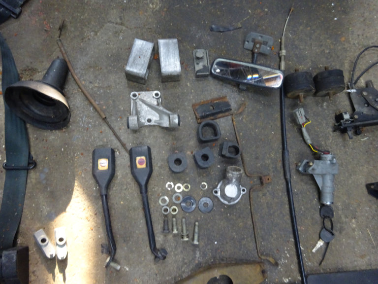 alternator bracket,ignition barrel steering lock including 2 keys, 2 kick panels,2 inch lowering blocks,front indicators,pinto thermostat housing,heavy duty engine mounts,rear view mirror,clutch fork,heater control panel with fan switch and cables,anti roll bar and steering rack rubbers,gear lever gator,clutch cable door striker plate,indicator and light switch stalk £650