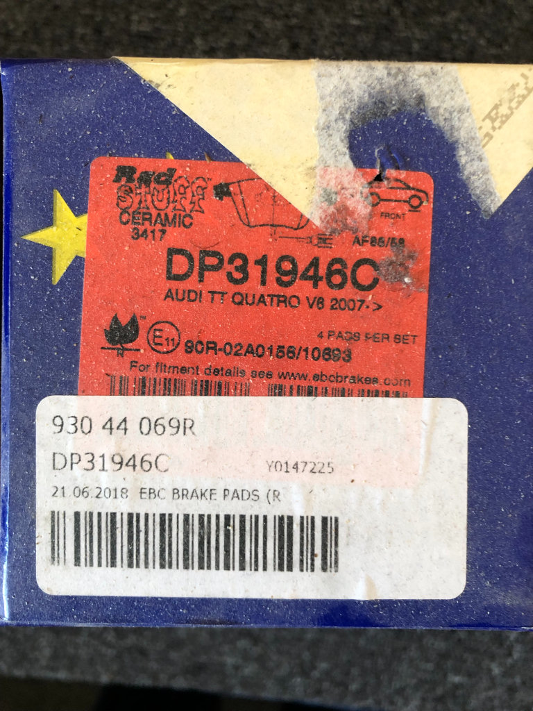 Posting for 2+ years**Front EBC Brake Pads** red stuff: 930 44 069R @ SG6