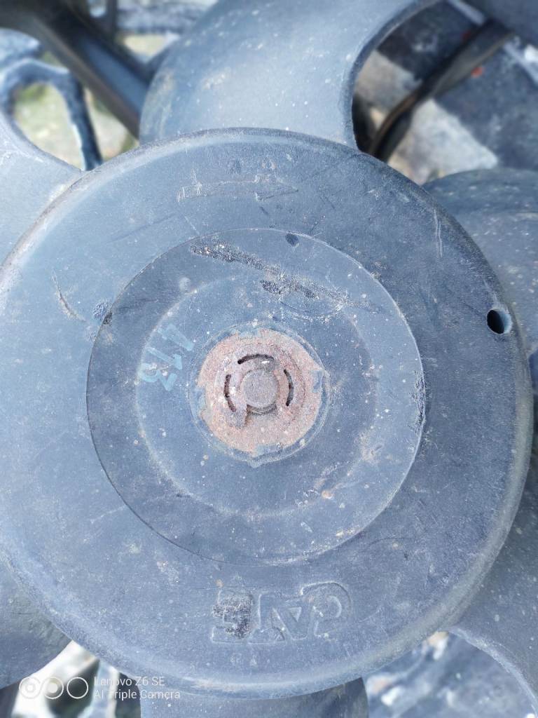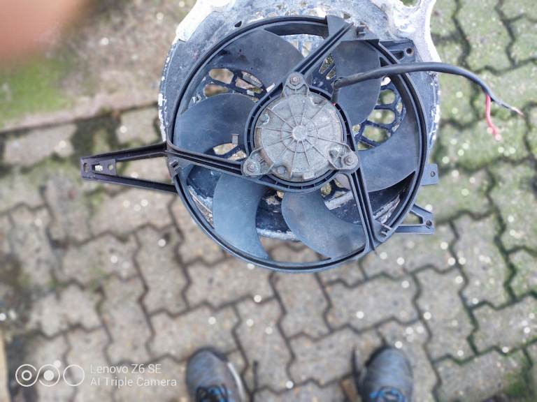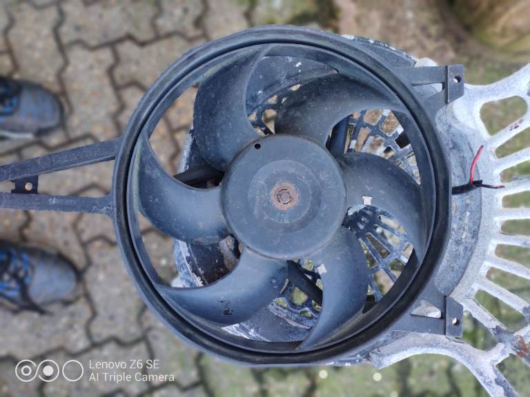 Car electric cooling fan made by a company called GATE made in Italy working 100% directional is quite wise she can see by the arrow on the blade rotates clockwise very efficient for cooling a car radiator surface two requirement came off of came off my old TRT car which was scrapped years ago being knocking around for ages I had it secured by cable ties onto the radiator the found diameter is 30 inches the outer brackets a cross 46 centimeters. Round part of the plastic fan is roughly 31 centimeters you've just got the red wire live and the black wire earth to run into the car electrics quite straightforward well-made Italian fan for a better and what they fitted to the TR7. 100% working. This is not one of those cheap Chinese universal ones that won't last too long this is good quality