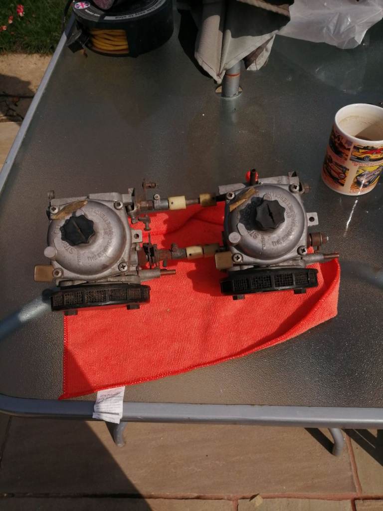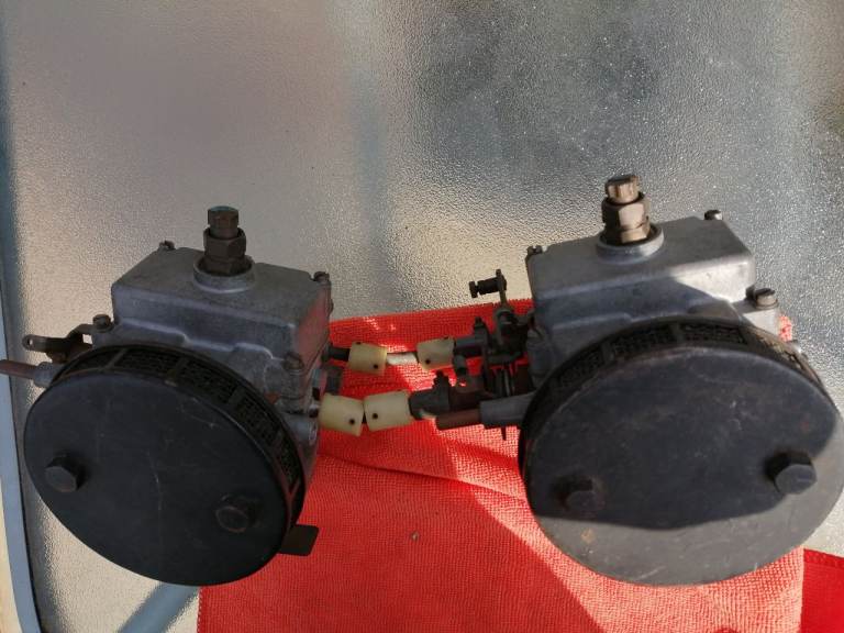 Twin Strombergs 1 1/4" (1.25mm) all linkages in good working order, pots move freely, included are a pair of mesh pancake air filters