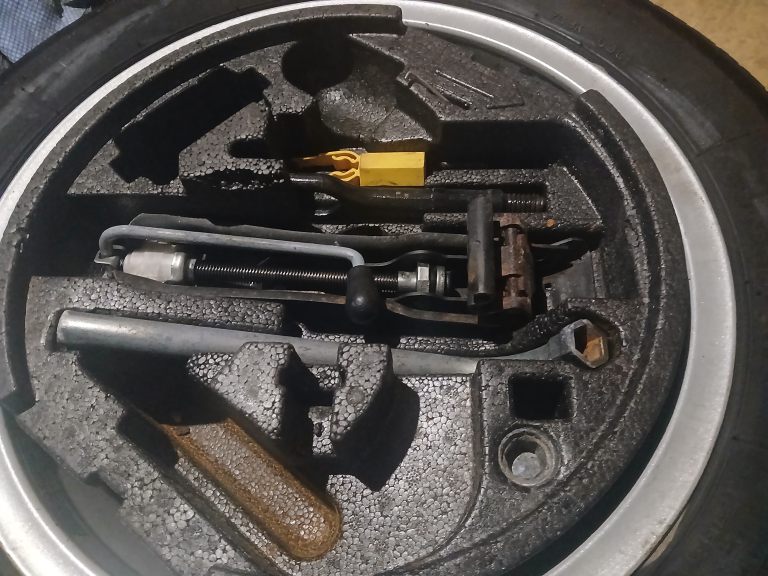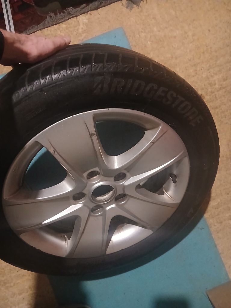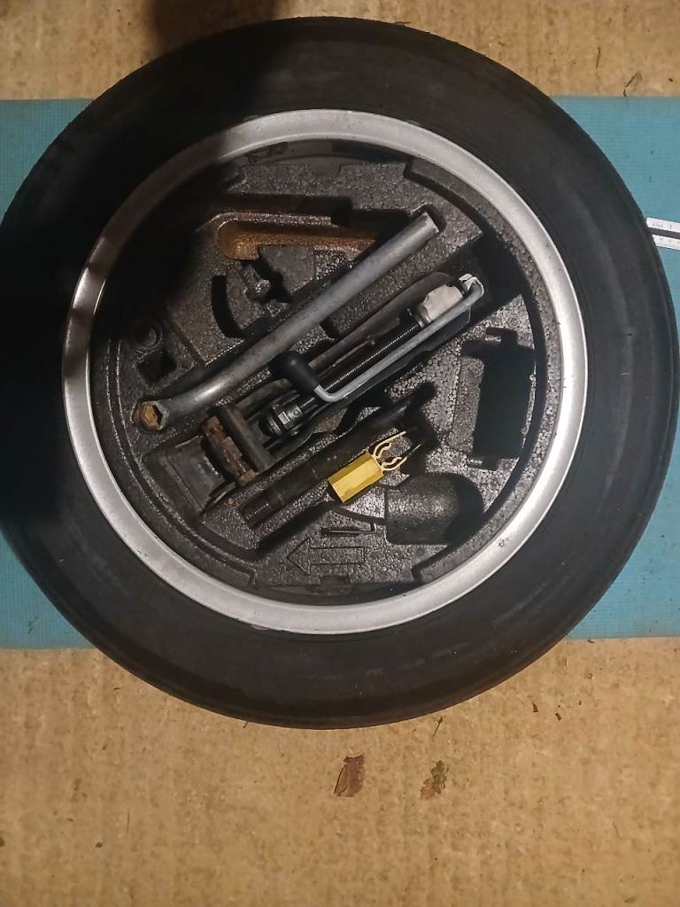 Spare wheel 16" and tool kit for Skoda Octavia mk 2. It came from my old 2012 plate Skoda Octavia mk2. The Bridgestone tyre has tread on it but the wire is visible in some places and would probably be deemed illegal but I just kept it in the boot as for me it's fine for a spare to get to the garage. The tool kit comprises of the wheel Jack, lug wrench, tow eye and nut cover remover.