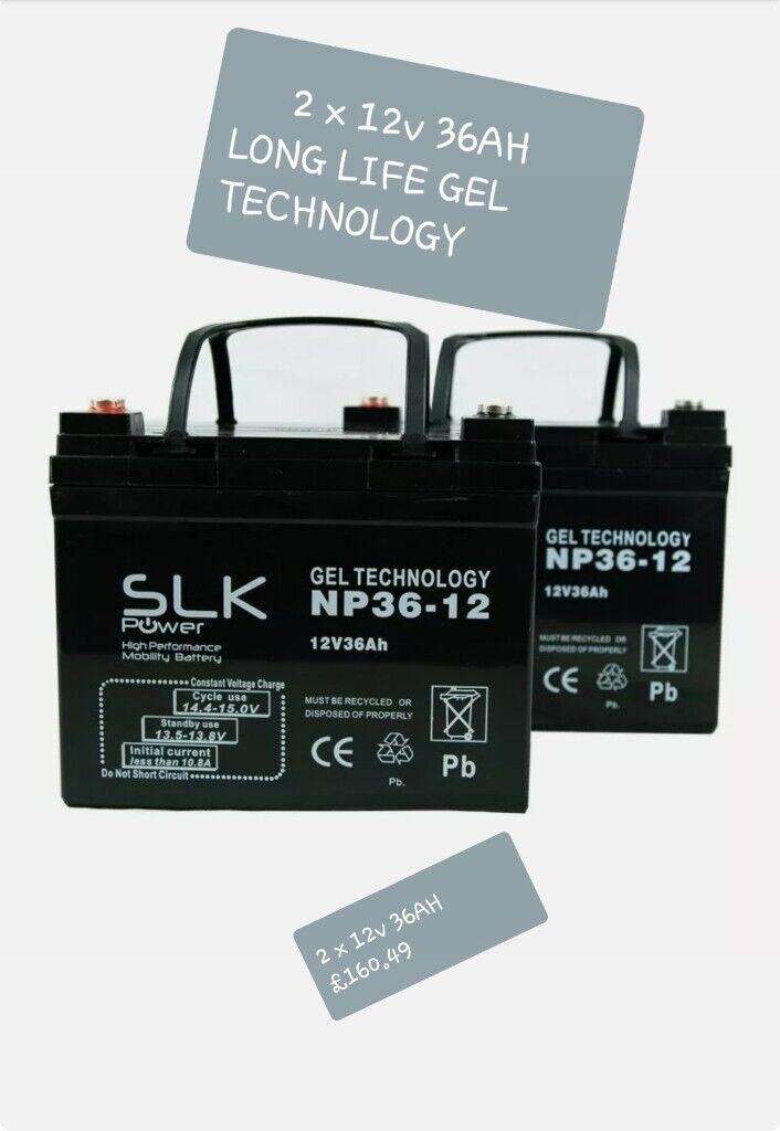 2 x 12v 36AH LONG LIFE BATTERY'S - GEL TECHNOLOGY