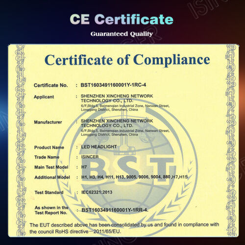& ROHS COMPLIANT FOR REPLACEMENT OF HEADLIGHTS, SPOT AND FOG LIGHTS BULBS AND OTHER SYSTEMS. SUPER BRIGHT SMD LED SUPER XENON WHITE LIGHT LAMP. EXTREMLEY LONG LASTING LIFE LOW POWER CONSUMPTION EASY TO INSTALL, NO MODIFICATIONS NEEDED, JUST PLUG IN AND GO.