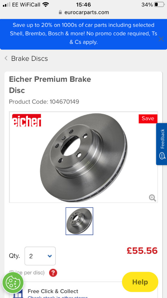 2 x eicher premium front brake discs. New in original packaging unopened. Premium brand part code 104 67 0149