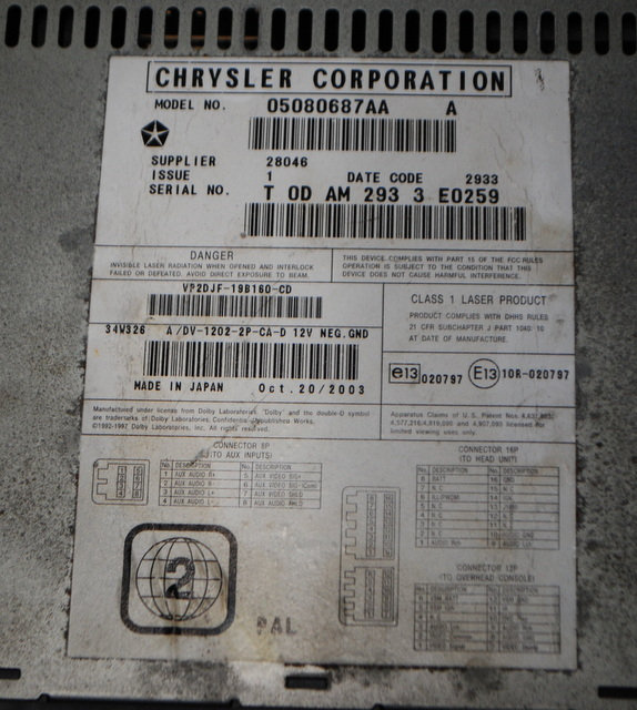 Posting for 2+ years2005 CHRYSLER GRAND VOYAGER CD DVD PLAYER 05080687AA