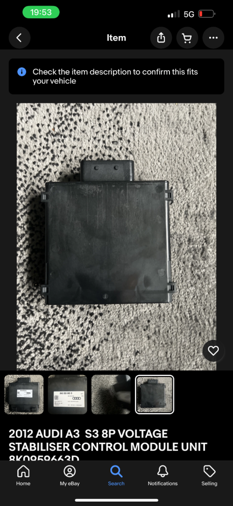 Posting for 6+ years2012 AUDI A3 S3 8P VOLTAGE STABILISER CONTROL MODULE UNIT 8K0959663D