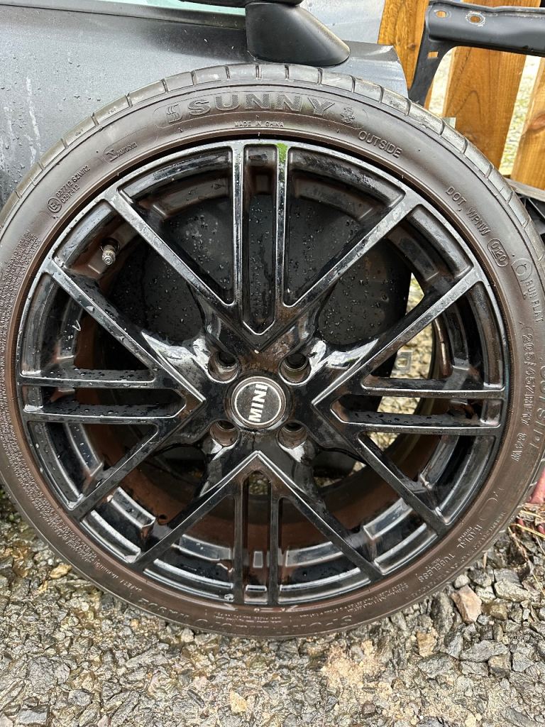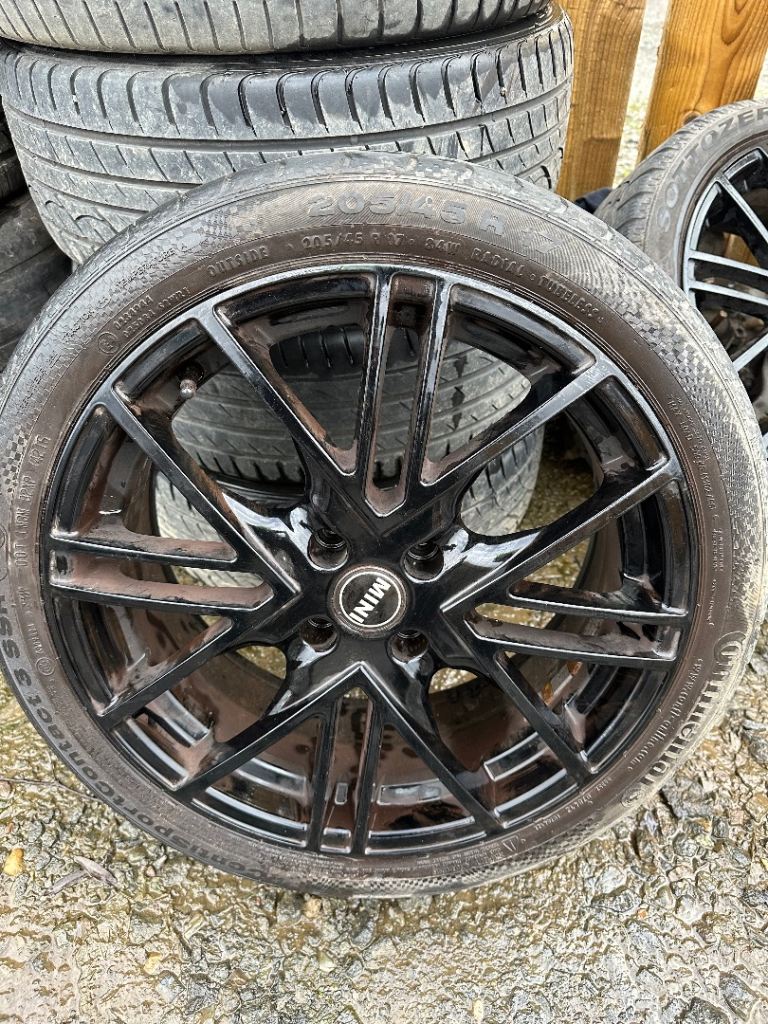 4 mini alloys refurbished 4 months ago with tyres with 5.5 mm of tread. 205/45/17 4x 100 .£220