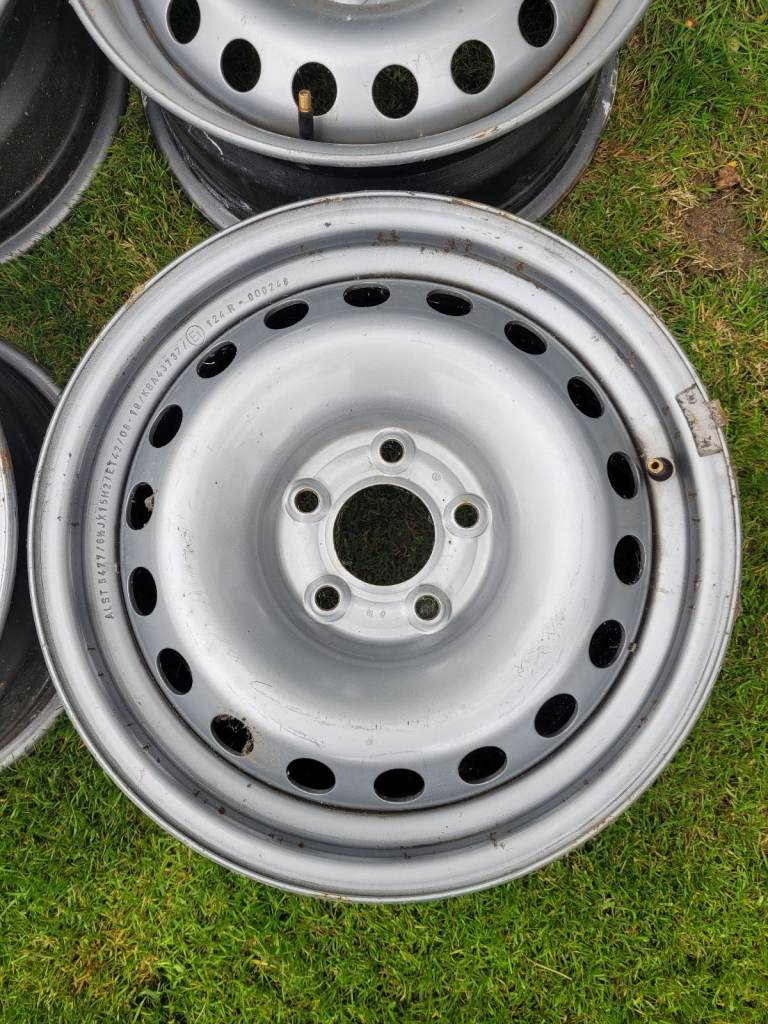 I set of 4, 6.5x 15" used Alcar steel wheels to fit 5 Stud Peugeot Partner, most 5 bolt Peugeot & Citroen Berlingo etc in good used condition.