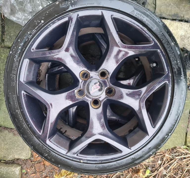 4x 18 inch black with red glitter snowflake alloy wheels with 225 40 18 tyres, St centre caps included, 1 tyre needs replaced. Fit various fords. £150